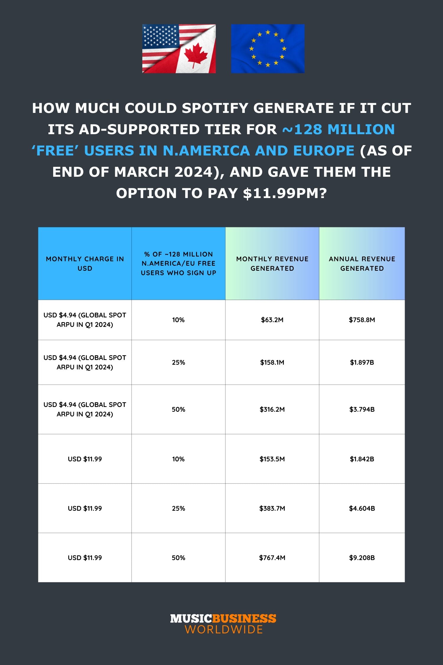 So… what would happen if we started charging these 388 million people the equivalent of USD $1 per month to access SPOT’s ad-funded tier?