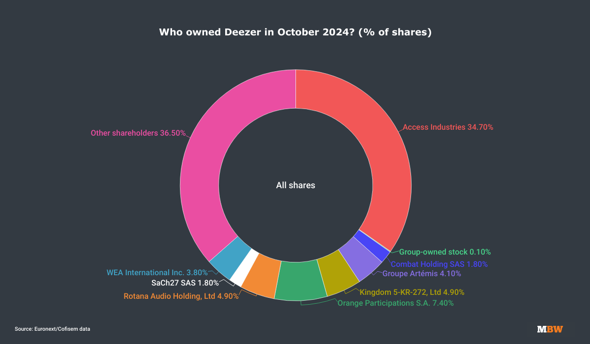 Below you can see a data visualization of Deezer’s various owners as of October 2024.