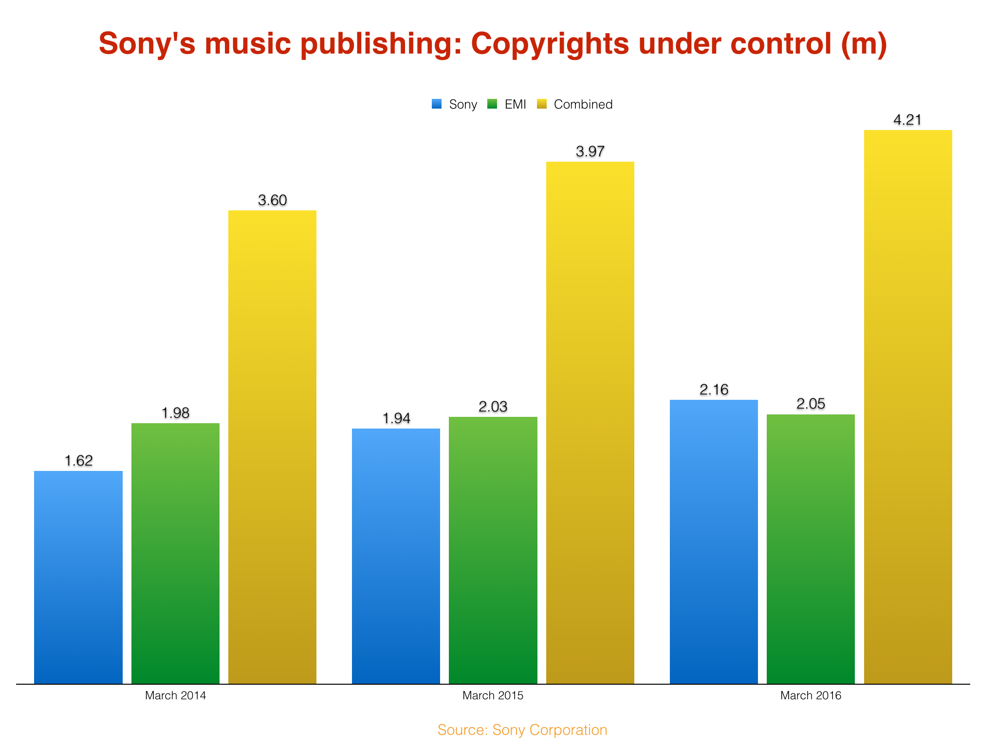 Across both its own repertoire and its administration of the catalogue of EMI Music Publishing, Sony manages over 4.2m songs.