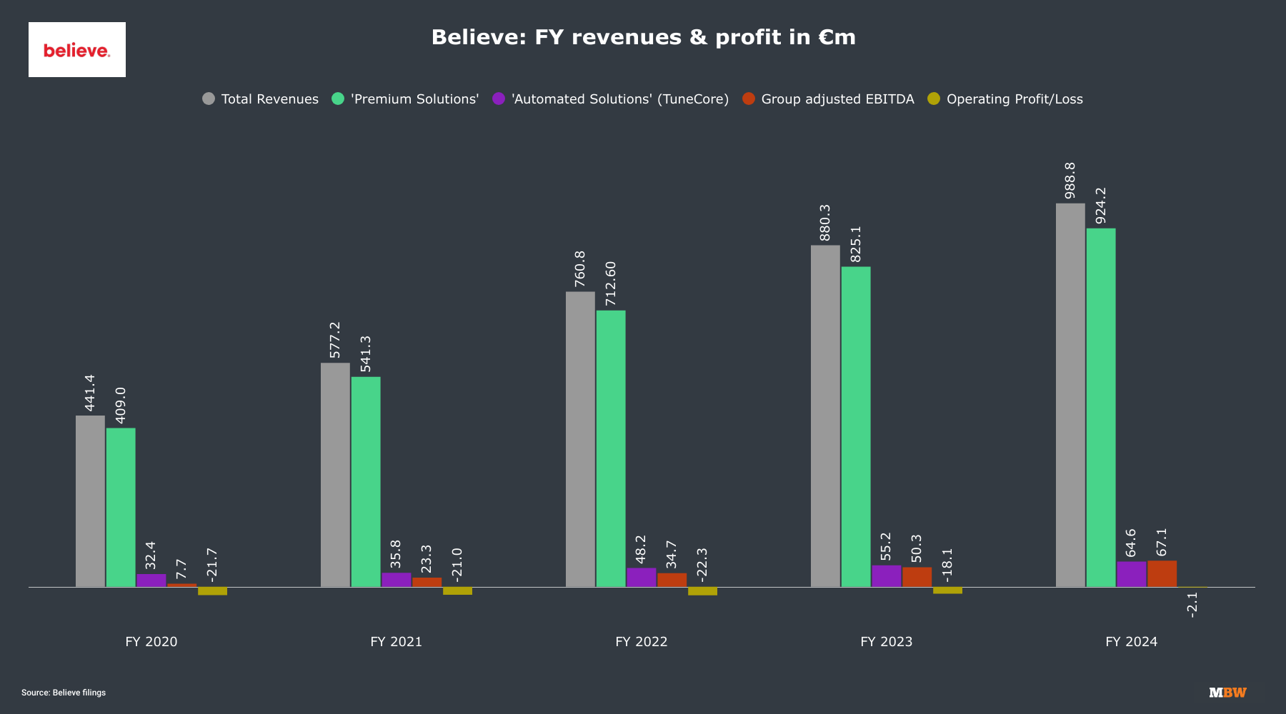Believe, the France-headquartered recorded music and publishing company, has issued annual public financials to shareholders since its IPO in 2021. (The company was subsequently taken majority-private again by investors including TCV, EQT, and Believe founder, Denis Ladegaillerie.)