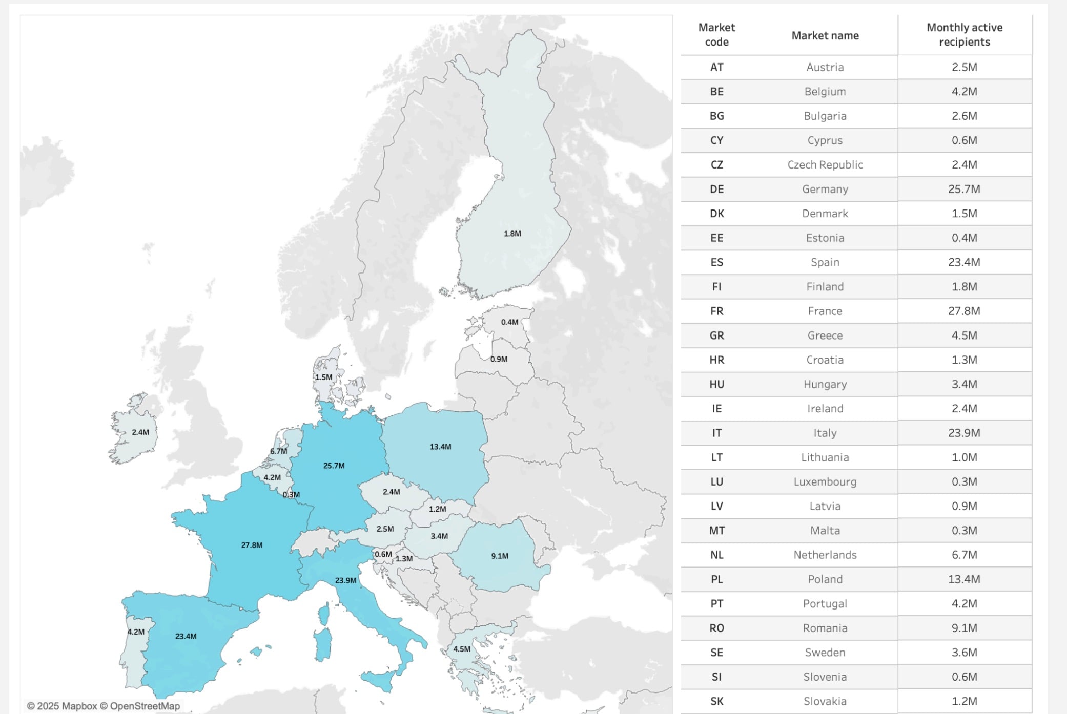 That’s up from 175 million people last year, and approaching a third of the population of the continent across the EEA and UK, the company noted.