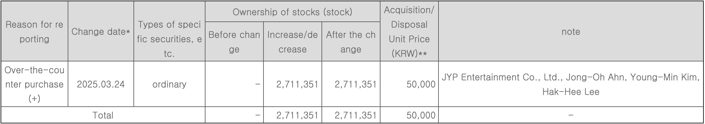 The filing shows that SM bought 2,711,351 shares in DearU for KRW 50,000 ($34) apiece from JYP Entertainment, another K-pop agency, DearU CEO Jong-Oh Ahn, and two other investors on March 24.