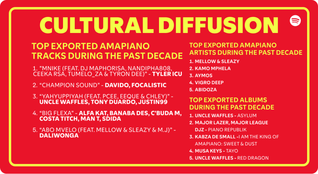 Pandemic-era social media dance challenges such as the #Johnvuligatechallenge, JazziDisciples dance challenge, and #Amanikinikichallenge “marked key moments when youth culture connected with and amplified the genre through social media,” Spotify said.