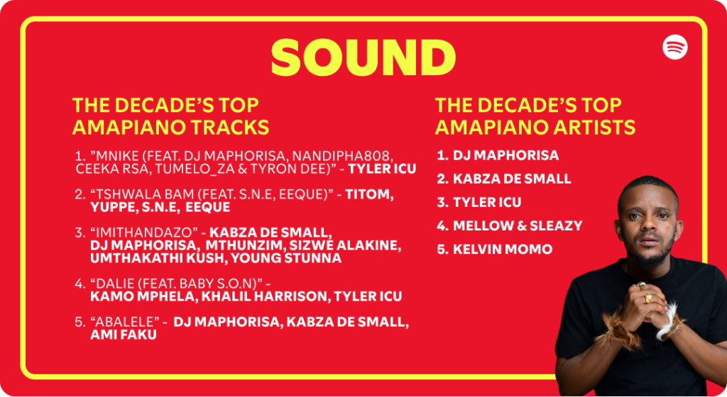 Spotify tallied up the most popular amapiano tracks on its platform over the past decade, and Tyler ICU’s Mnike came out on top. DJ Maphorisa was named “the decade’s top amapiano artist.”