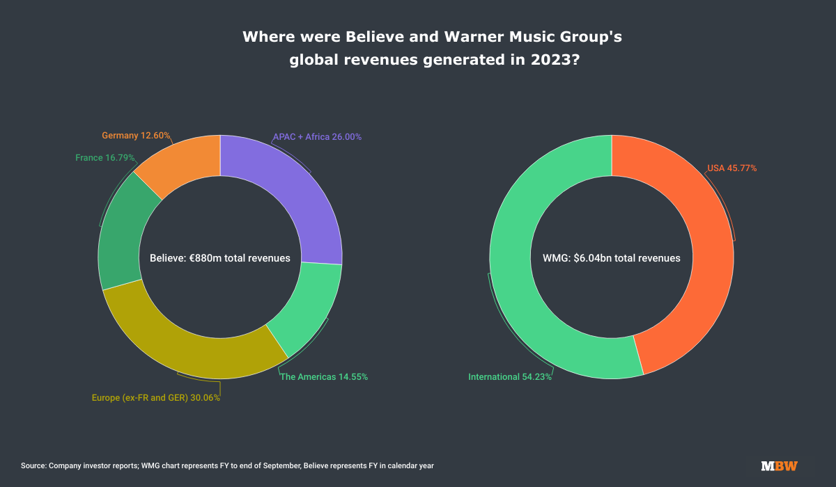 Believe vs. Warner Music Group: Global revenue breakdown by territory (2023)