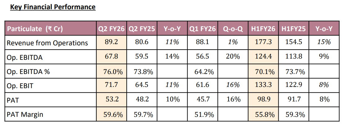 After-tax profit came in at INR ₹532 million ($6.1 million), up 10% YoY, while the after-tax profit margin stayed steady at 59.6%.