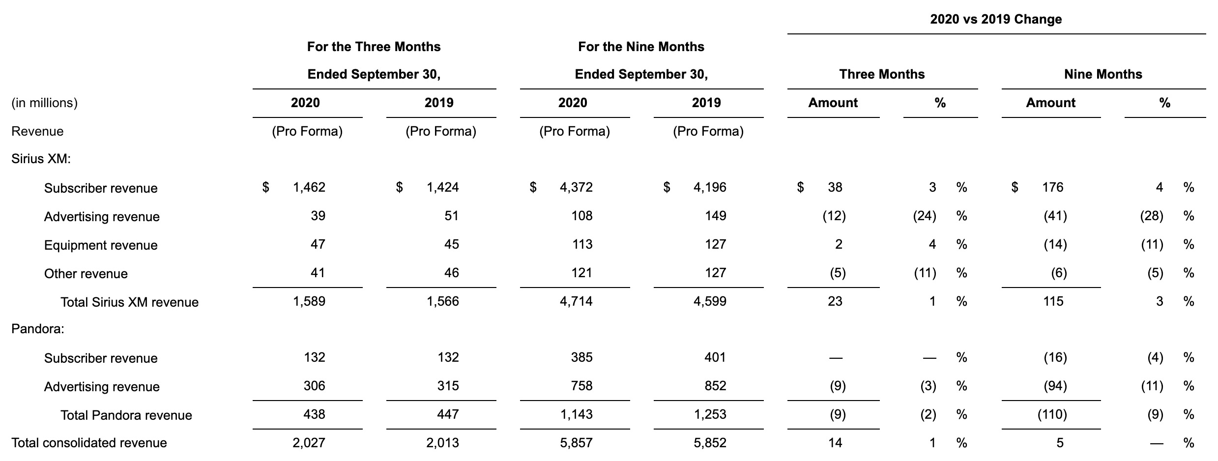 SiriusXM Holdings generated revenue of $2.025 billion in Q3 2020, up 1% year-over-year, according to the company’s Q3 2020 operating and financial results (for the thee months to end of October).