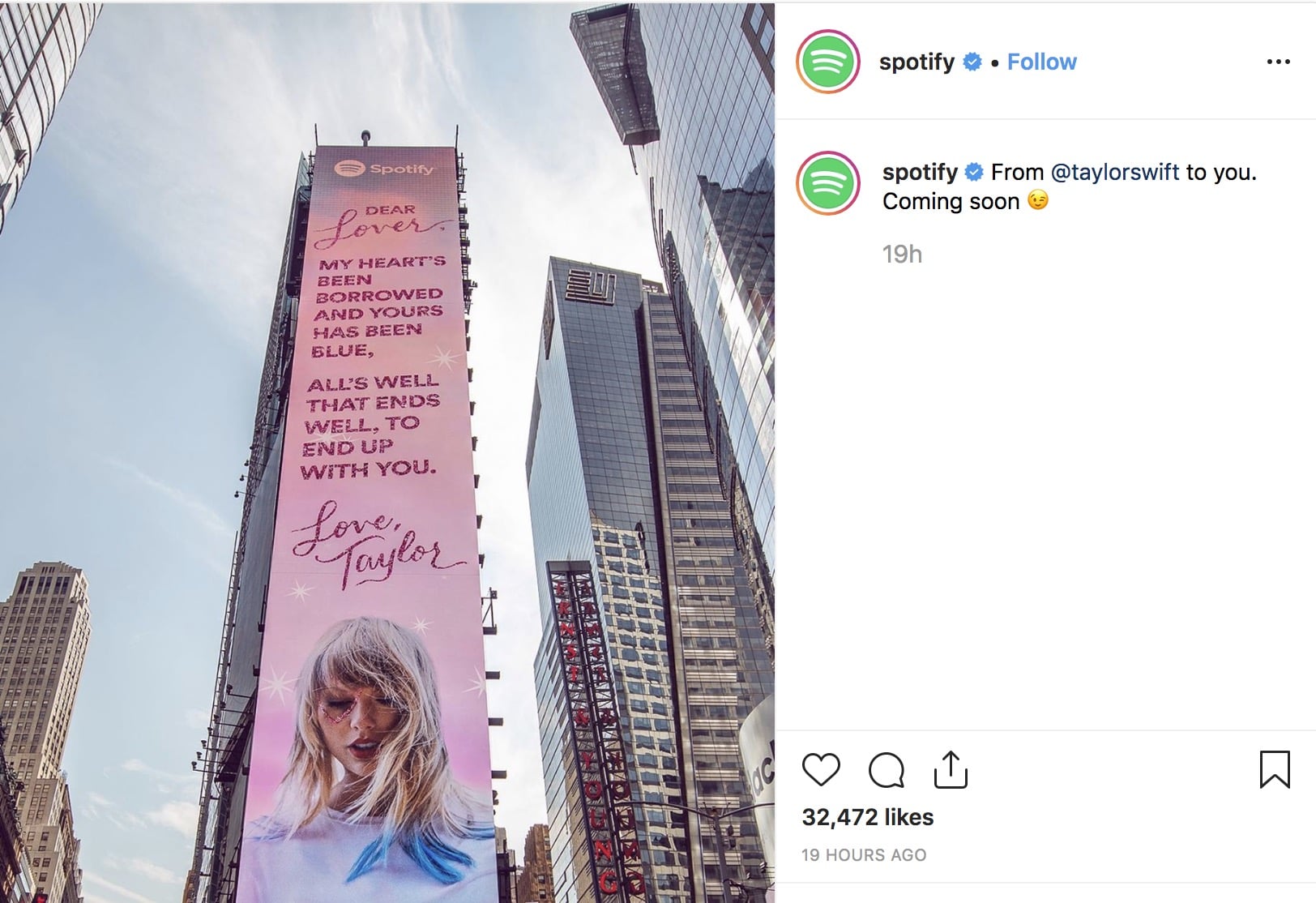 SPOT appears to be going all out to ‘win’ a battle with Apple Music to be the biggest audio streaming partner for the record; Apple announced in June that Lover had broken its day-one record for ‘pre-adds’.